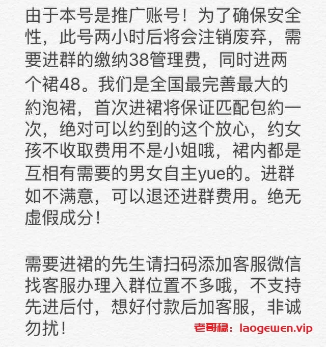 猫咪社区私信的广告,估计有专门的骗子群,先来一个人告诉你内容,还发好几张假截图,说进群48,之后又拉一个群说是要管理费96,收完钱以后立马销号消失,各位哥们遇到这种要小心别上当了