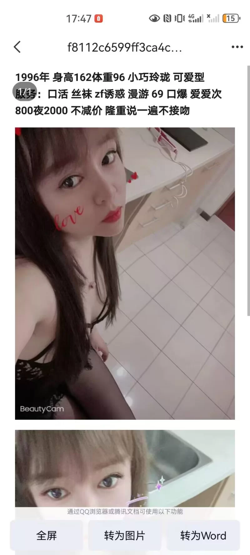 威客管理提示:要求付定金 保证金的,总之提前要钱的都是骗子 好些天没出来活动了,今天一上炮q,首先邂逅的就是太阳宫婕妤。我看了她照片,奶子真大,一双美腿,虽然没露脸,但是绝对差不了,一见钟情的感觉。我以前还蛮喜欢去太阳宫那边探索的,经常会有惊喜和极品。所以这个婕妤美女也成了我的目标,好想把她拿下。 正好今天工作上的事情不多,下午找了借口就溜了出来,直达妹妹住处。妹妹这边也是蛮清闲的,不需要等直接上楼。见到婕妤第一眼,外表好淑女啊,气质很知性,人看起来蛮美的,水灵灵的很靓丽。 妹妹很温柔,不会说一进门就催你做,还叫我歇息下,非常的客气乖巧。我喝水的时候,偷偷打量她的身材,好迷人啊,前凸后翘的。我站起从后面抱住她,就开始摸她。妹妹不但没有拒绝我的动作,而且发出了销魂的娇喘。转过身,衣服脱光,妹妹挽着我的手侍候我洗澡。卫生最重要嘛。不过都是她给我洗,我只是趁机更加变本加厉的揩油而已。因为气氛非常好,妹妹在卫生间里就给我口上了,她的技术很棒。她还俏皮的冲我眨着眼睛,看我等会儿上床我来怎么收拾你。妹妹让我上床躺好,她穿上了丝袜又来勾引我。 婕妤这种知性美人儿,就是外表看着特别淑女,但是当她真正上了床变身小女人,又显得非常的风骚。她给我做漫游的时候,舌头很软很灵活,全身舔一遍,她性格真好,那种天然的知性魅力把我迷的不行,不得不说婕妤的奶子真的很大,胸推的时候超爽,超有感觉,小弟弟一柱擎天后,便翻身上马,妹妹性欲也是很强盛,水非常多,我也让她好好舒服了,互相给予嘛,我们就像是认识许久的恋人一样,感觉还蛮合拍的,这就是传说的缘分啊,释放后妹妹也不催我,让我休息好再起身,她人可好了。