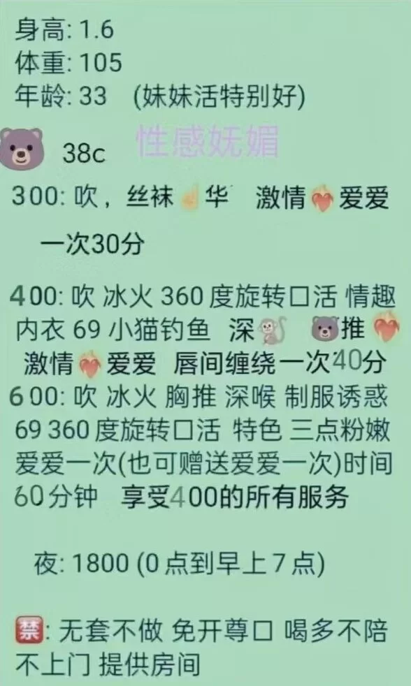 服务项目: 陪洗,口爆,丝袜,毒龙,舌吻